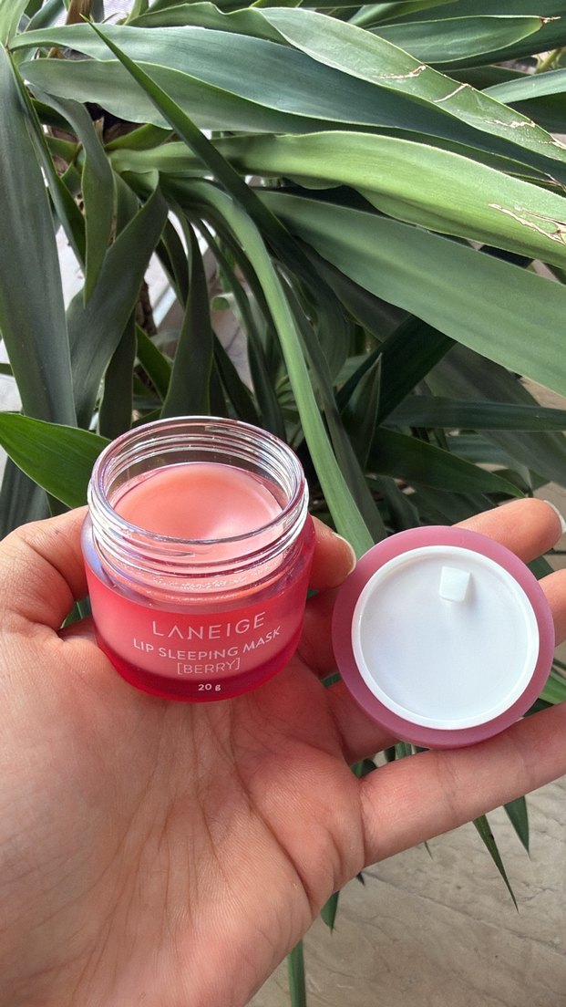 Laneige marka, pastel pembe renkte, berry kokulu 20 gramlık dudak maskesi. Gece boyunca dudakları nemlendirir ve bakım sağlar.