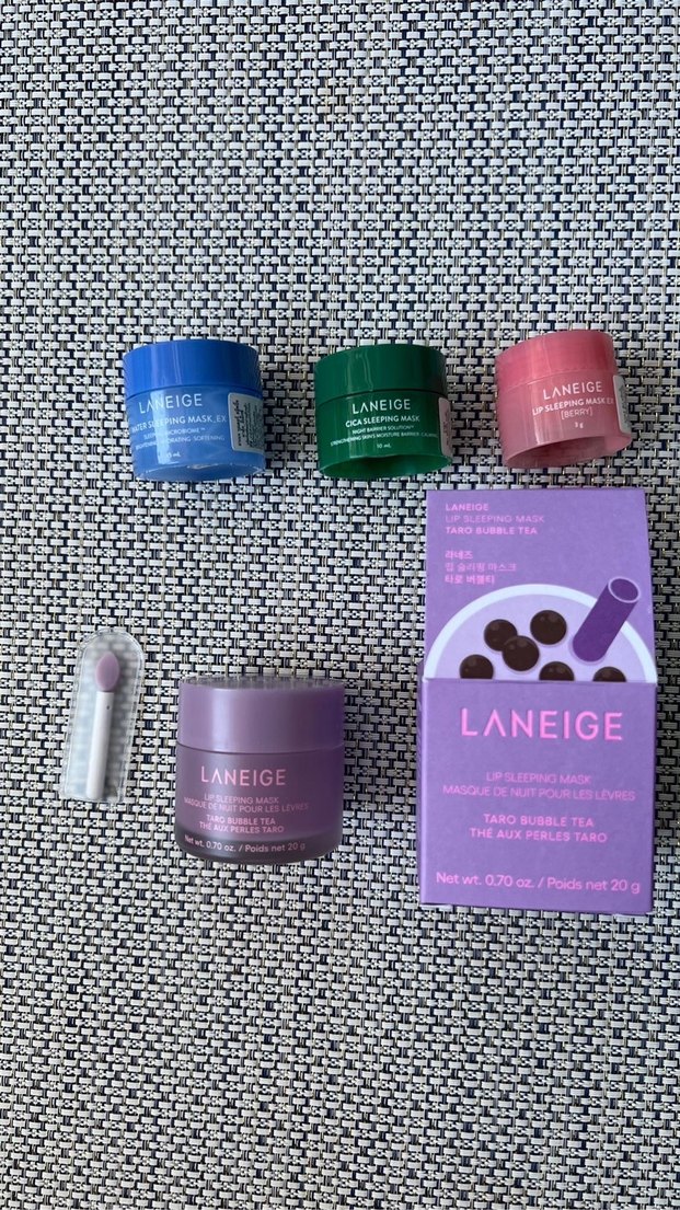 Sifir orjinal urunlerdir. Set fiyatidir. Laneige Lip Sleeping Mask Taro Bubble Tea:20g. Water Sleeping Mask_EX:15ml. Cica Sleeping Mask:10ml. Lip Sleeping Mask_EX Berry:3g. #laneige #lipsleepingmask #dudak #dudakmaskesi #kore #kozmetik #ciltbakim #dermokozmetik #trend #sephora #amorepacific #dudakbakimi #nemlendirici #balm #berry #tarobubbletea