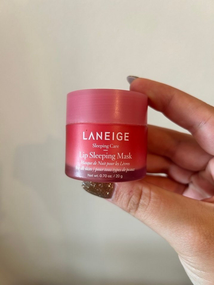 Laneige'in parlak pembe dudak maskesi, gece boyunca dudak bakımı ve nemlendirme sağlar.