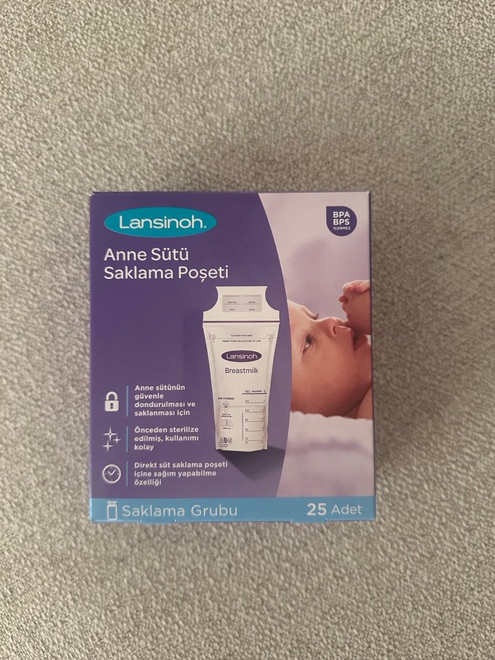 Lansinoh anne sütü saklama poşetleri, 25 adetlik pakette, güvenli ve kolay dondurma ve saklama için tasarlanmıştır. İçinde 22 tane var 3 tane kullanıldı.