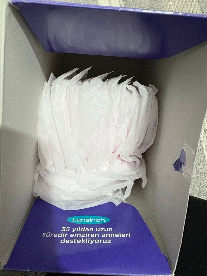 Kutunun bir kısmı kullanıldı, fotoğrafta görünen kadarı, açılmamış paketli şekilde Lansinoh beyaz göğüs pedleri, 35 yıldan uzun süredir emziren anneleri destekliyor. Yumuşak ve cilde nazik.