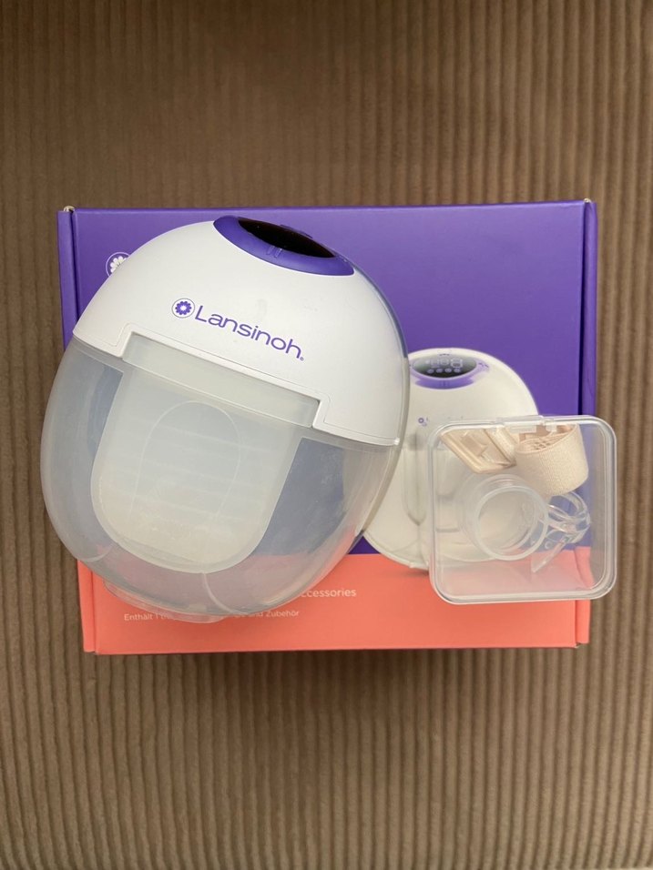 Lansinoh beyaz renkte, kompakt tasarımlı göğüs pompasıdır. Şeffaf kutuda temel aksesuarlar bulunmaktadır.