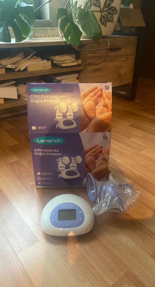Lansinoh çiftli elektrikli göğüs pompası, açık kahverengi tasarım ve kullanımı kolay dijital ekran ile konforlu ve verimli pompalama sağlar. Iki farkli olcu gogus pompasi ve biberonlar dahil.