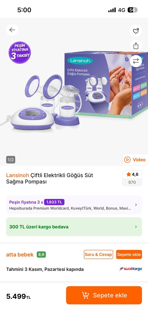 Lansinoh çiftli elektrikli göğüs süt sağma pompası, dijital kontrol ve konforlu tasarımıyla etkili süt sağımı sağlar. Hafif mor renkte. 7 ay önce alındı 1 2 defa kullanıldı hijyen gereği biberon kısmını koymuyoru. Onun yerine sıfır lansinohun mama kablarından aldım biberon ucunu alabilirsiniz sadece
