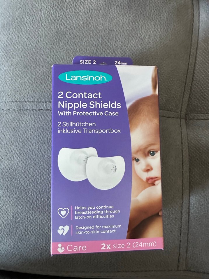 Lansinoh marka 24mm boyutunda 2 adet göğüs ucu koruyucu, koruyucu kutu ile birlikte. Emzirme zorluklarında yardımcı olur, cilt teması destekler.
