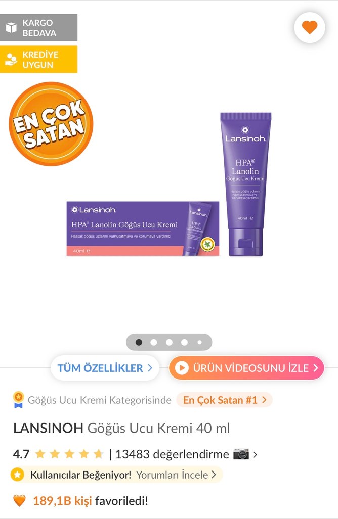 Lansinoh HPA Lanolin göğüs ucu kremi, doğal lanolin ile yatıştırıcı ve koruyucu bakım sağlar. Kullanıcılar tarafından çok beğenilmiştir. Ürünün küçük boyutu kullanıp bitirdim. Bu ürünü çok az kullandım yarısından fazlası duruyor.