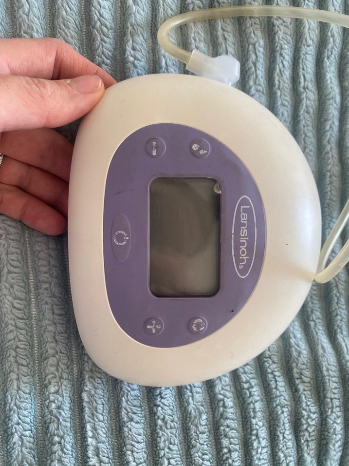 Lansinoh göğüs pompası, dijital ekran ve kontrol düğmeleri ile gri ve beyaz renkte tasarlanmıştır. Etkili süt sağma sağlar.