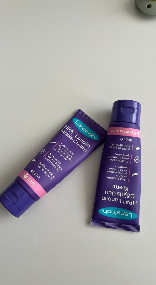 Lansinoh HPA Lanolin göğüs ucu kremi 40 ml tüplerde birisi hiç kullanılmadı diğeri yarıdaan fazla duruyor. Parfümsüz yıkama durulama gerektirmez emzirme döneminde hayatımı kurtarmıştı fakat sütüm kesildiği için kullanamıyorum. 1 adeti normalde 550₺.