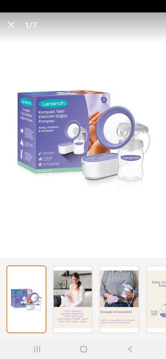 Lansinoh'un açık mor renkli kompakt tekli elektrikli göğüs pompası, kolay ve konforlu kullanım sağlar. Kompakt yapısıyla etkili süt sağımı sunar.