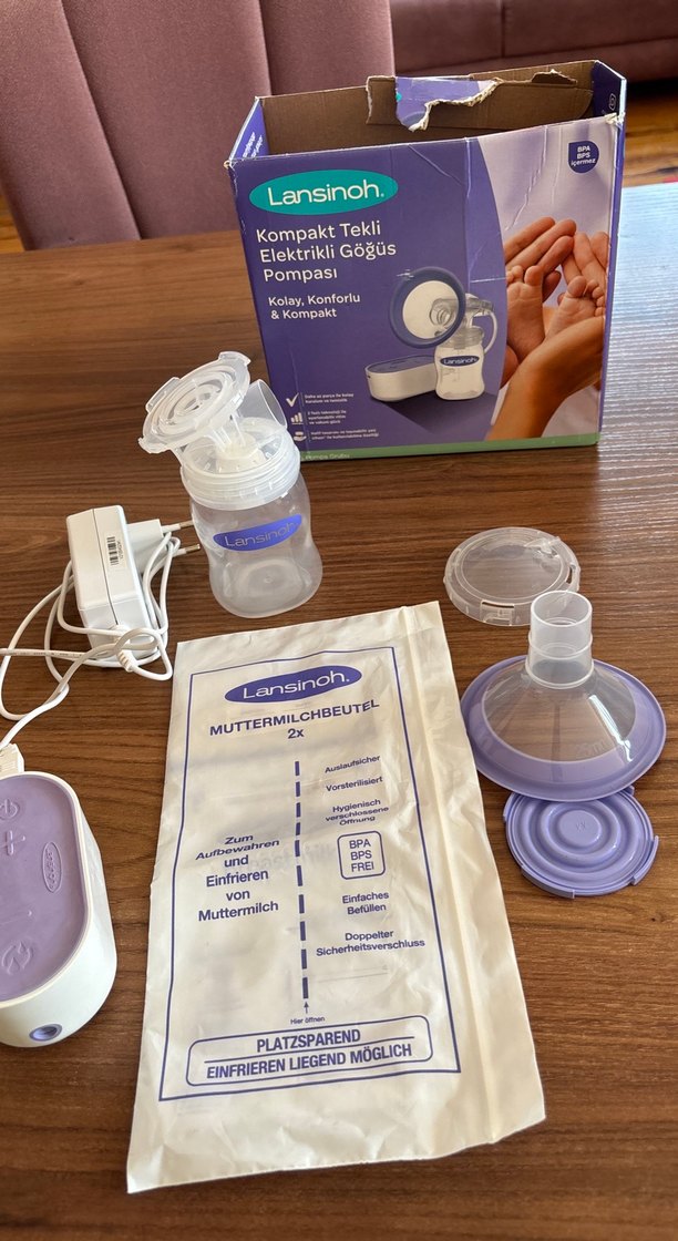 Lansinoh Kompakt Tekli Elektrikli Göğüs Pompası – Hafif Mor Renk ✔️ Yalnızca 1-2 kez kullanıldı, çok iyi durumda ✔️ Kutusu ve parçalarıyla birlikte gönderilecektir ✔️ Biberon ucu eksik ama diğer Lansinoh uçlarla uyumlu ✔️ Kolay ve konforlu kullanım için tasarlanmış ✔️Eksik parça sebebiyle uygun fiyattan veriyorum ✔️Kargo ücretsiz – hızlıca kargolanır Güvenle sorabilirsiniz, memnuniyetle yanıtlarım.