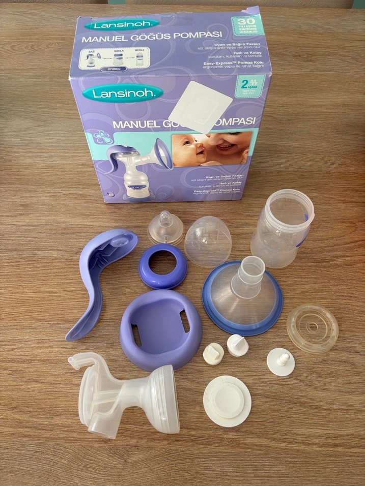 Lansinoh manuel göğüs pompası açık mor renkte, kolay süt sağımı için tüm parçaları içerir. Rahat kullanım ve kolay temizleme sağlar. Eksiksiz Orjinal kutusu ile gönderilecektir. Biberon parçası hiç kullanılmamıştır.
