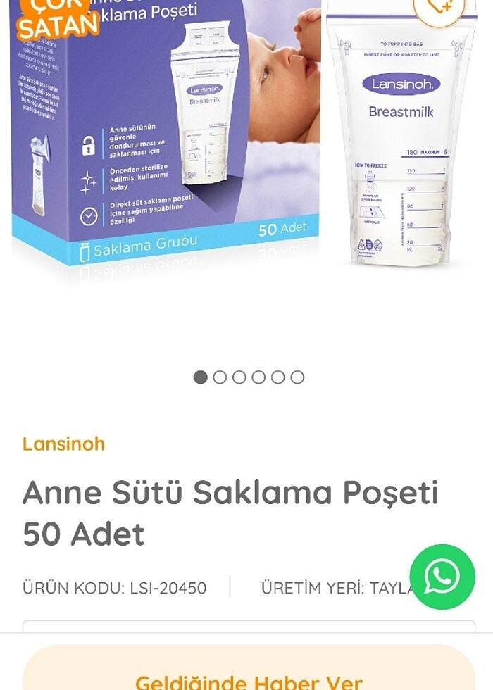 Lansinoh 50 adet süt saklama poşeti kullanılmadı.