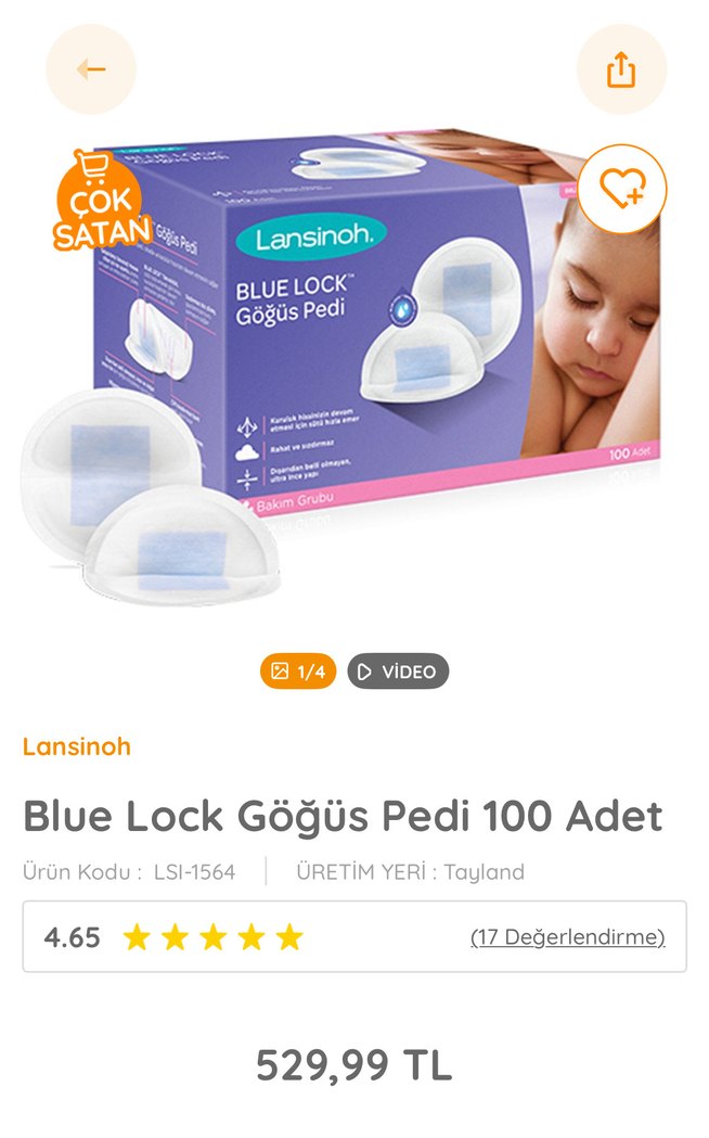Lansinoh markasına ait, tek kullanımlık ve bej renkte 100 adet göğüs pedi. Emici ve yumuşak yapısıyla anneler için ideal.