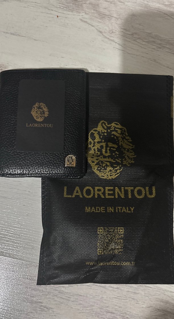 LAORENTOU erkek cüzdan, koyu altın renkli baskılı desene sahip. İtalya yapımı, modern klasik ve klasik zarafeti bir arada sunar.