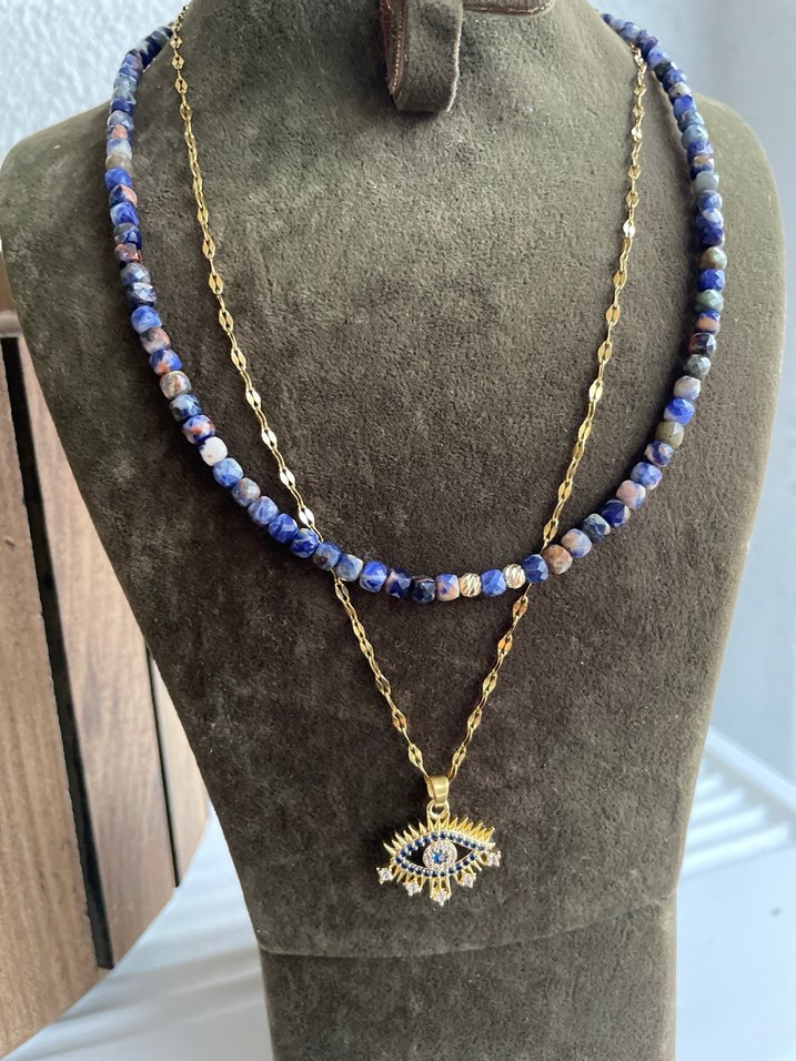 Lapis lazuli çelik ikili Kolye