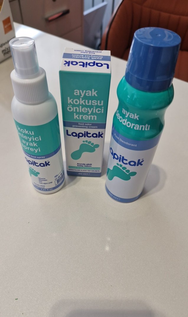 Lapıtak ayak kokusu önleyici set, ayakları taze ve kokusuz tutan sprey, krem ve deodorant içerir.