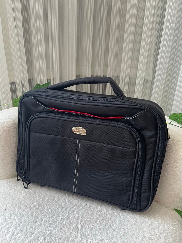 Sentetik kumaştan, fermuarlı cepleri olan siyah kadın laptop çantası, klasik ve gotik tarzda iş kullanımı için uygundur. Addisson Markadır kalitesini bilen bilir