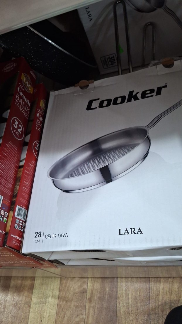 LARA 28 cm çelik tava, dayanıklı gri çelik gövde ve uzun sap ile çeşitli yemekler için uygundur.