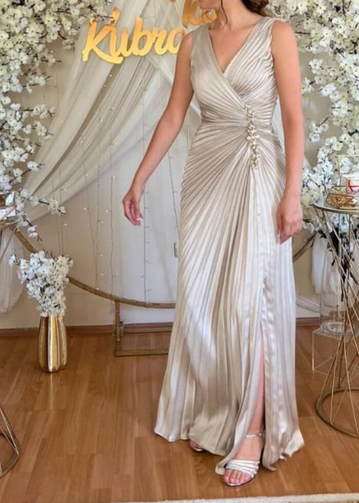 Elbiseyi uygulamadan aldım, bana küçük geldiği için tekrardan satışa çıkardım. İlk resimler ilk sahibinin resimleridir. Elbise 38 beden. Elbiseyi ilk giyenin kilosu 55 boyu 163 cm. Benim boyum 157 cm kilo 58. Göğüs 88 cm Bel 75 cm basen 105 cm. Elbise basen kısmından itibaren genişliyor. Gönderi İstanbul Bahçelievler den olacaktır. İsteyen deneyip alabilir. Elbise gümüş renk çok şık benim çok hoşuma gitmişti olabileceğini düşünüp aldım, dar geldiği için tekrardan satışa çıkarıyorum.