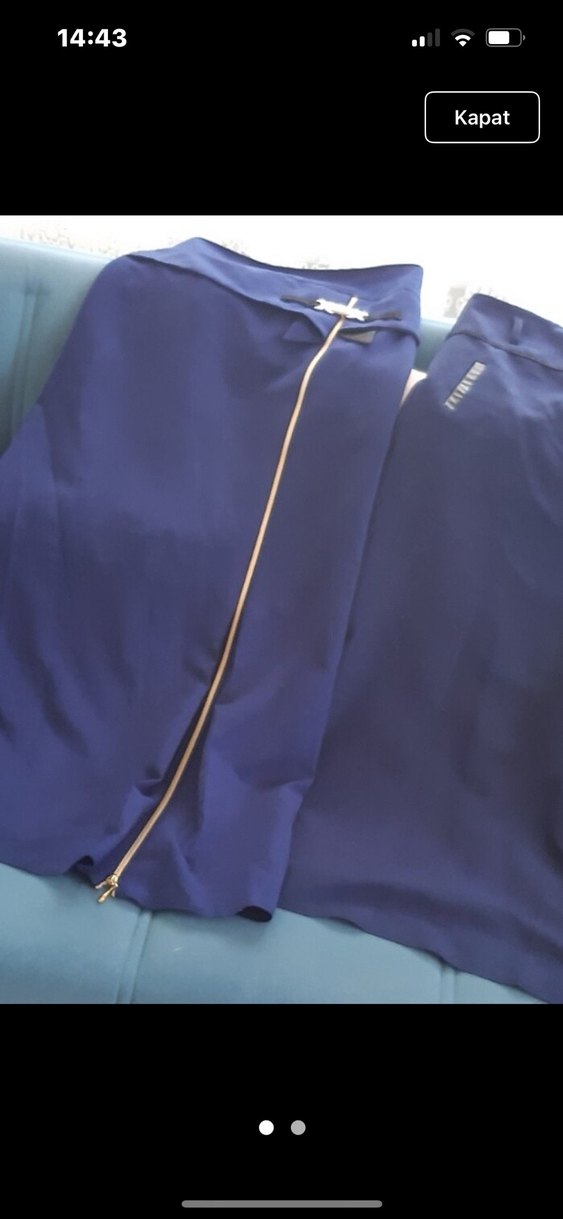 Fermuarlı, parlak Larcivert renkte, kesimli kadın uzun etek