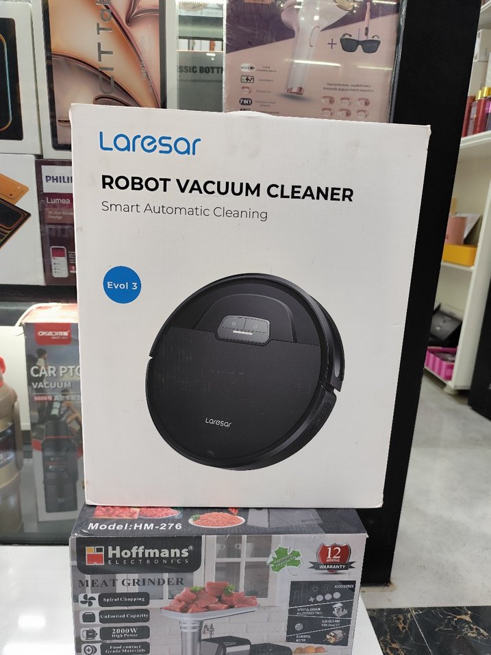 Laresar robot süpürge, akıllı otomatik temizlik özelliği ve şık siyah tasarımı ile zemin temizliğini kolayca yapar.