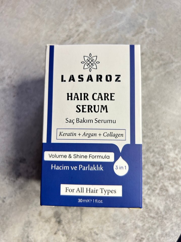Lasaroz saç bakım serumu keratin, argan ve kolajen içerir. Hacim ve parlaklık sağlar. Tüm saç tipleri için uygundur. 30ml. Hiç kullanılmadı,sıfırdır. Yorumlara da bakabilirsiniz çok güzel.orjinal sitesinden 255 tlye aldım. Uyguna satıyorum❤️ #lasaroz #haircareserum #saçbakımserumu #serum