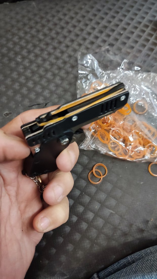Siyah katlanabilir çok amaçlı çakı, kompakt tasarıma ve sağlam tutuşlu lastik atan tabanca nostaljik çocukluğunuza dönün. içinde lastikleri ile beraber
