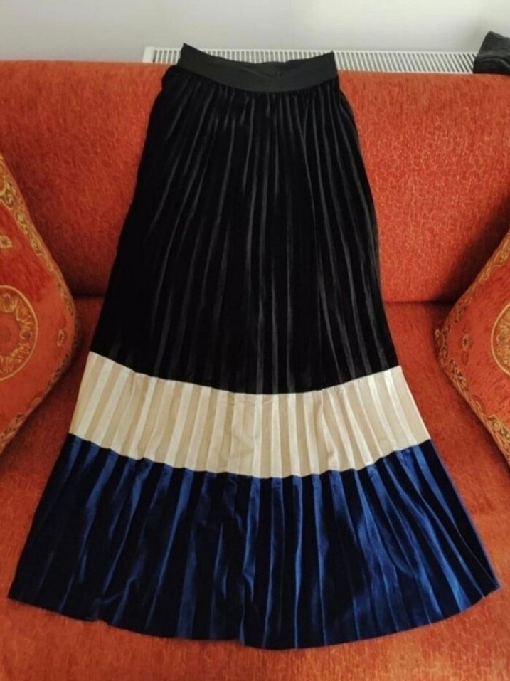 Kadın piliseli uzun etek, kadife kumaşı rahat ve yumuşacık. Sayılı kullandım hamileyim olmadığı için satıyorum. L bedeni ama XL bedenli bile kullanabilirsiniz, belindeki lastiği oldukça geniştir