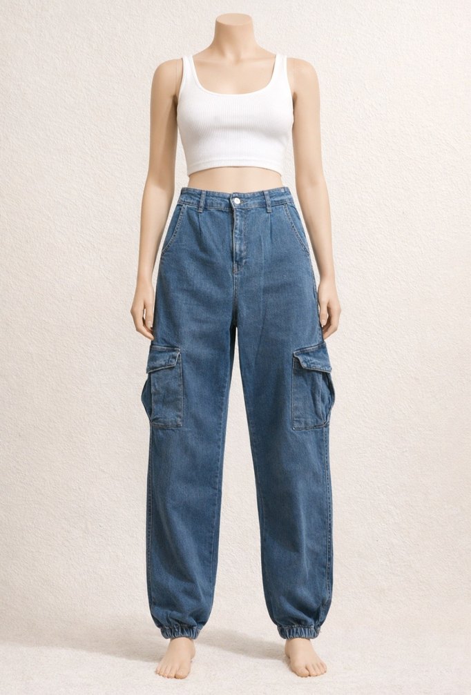 Likralı yüksek bel.kargo cepli jean W 30 bel tek taraflı 38 cm ağ uzunluğu 33 cm boyu 110 cm