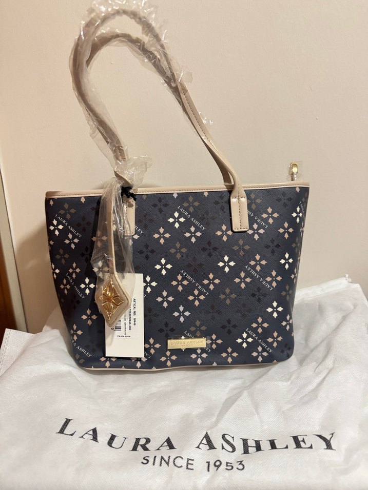Laura Ashley gri desenli sentetik kumaştan yapılmış, altın detaylı, fermuarlı kadın kol çantası.etiketlidir. Tozlukla beraber gönderilecek. #lauraashley #kadınçanta #çanta
