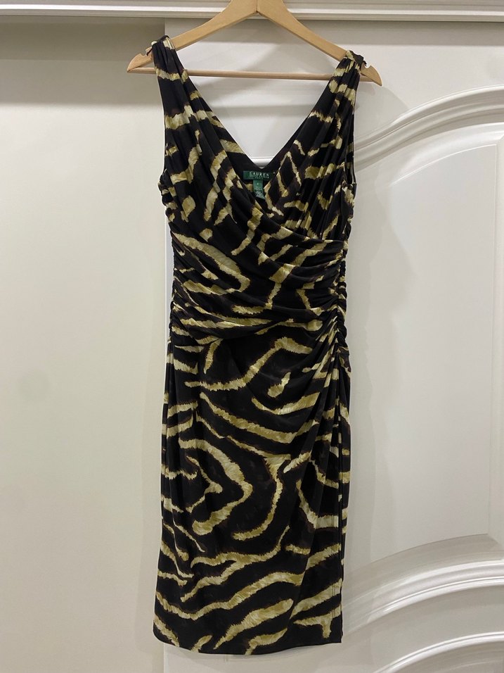Lauren ralph marka Zebra Desenli Drapeli Midi Abiye Elbise