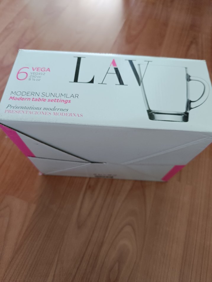 LAV Vega seti, modern masa sunumları için tasarlanmış 6 adet şeffaf cam kupadan oluşur. Basit ve şık tasarımıyla öne çıkar. ☕