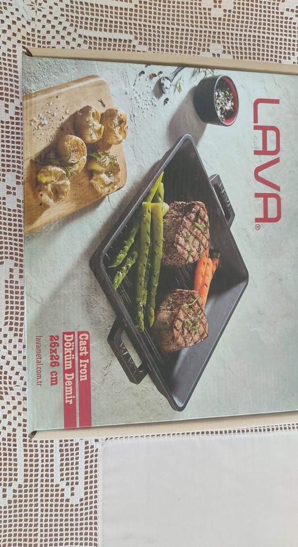 LAVA markasının 26x26 cm ölçülerinde, dayanıklı siyah döküm demirden yapılmış ızgara tava. Sebze ve et pişirmek için uygundur.