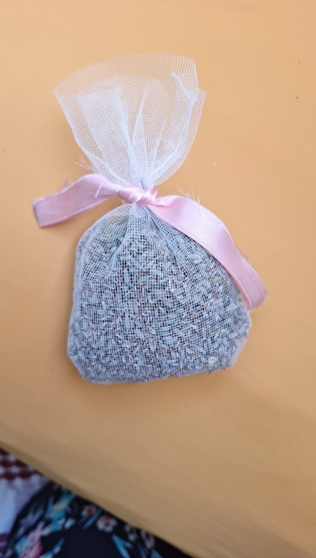 Pembe kurdele ile bağlanmış, file kumaştan yapılmış lavanta kesesi. Sivri sinek, böcek ve güveleri uzaklaştırır.