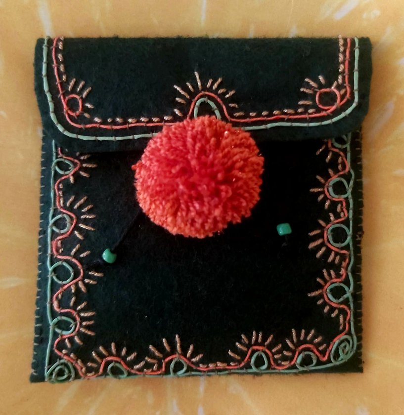 Keçe üzerine nakış işlemeli, astarla keçe arasına lavanta serpiştirilmiş kokulu el yapımı mini cüzdan. Ölçüleri son fotoğrafta yer almaktadır.