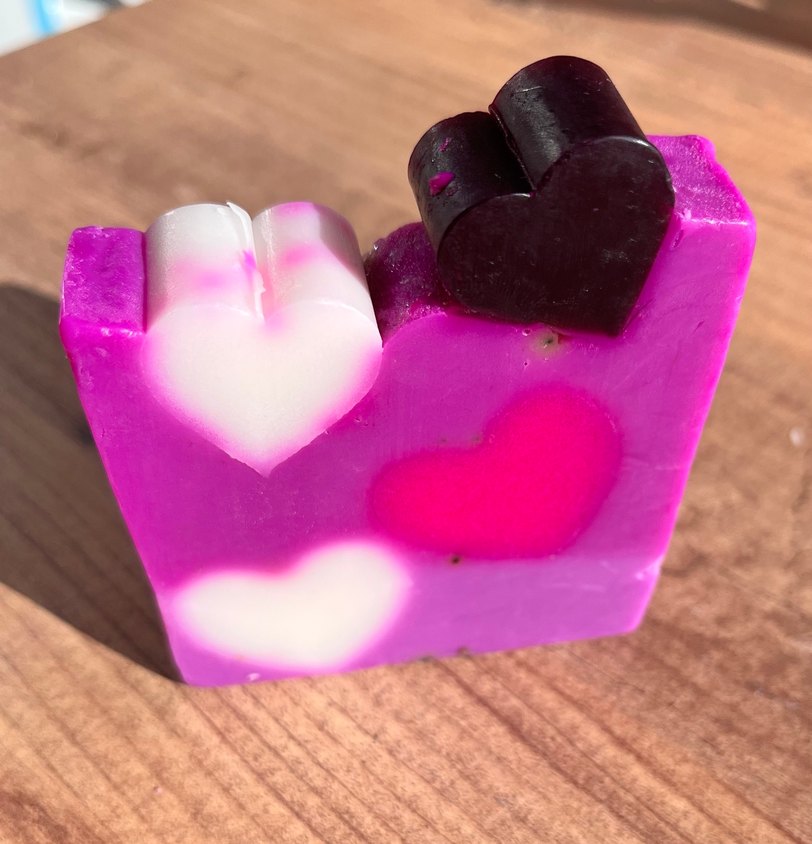 Bu mor sabun, çeşitli kalp desenleriyle dekoratif ve lavanta kokusuyla canlı bir hava katıyor. ️ İçeriğindeki lavanta yağı sayesinde cildinizi antiseptik özellikleriyle korurken aynı zamanda rahatlatıcı bir koku sunar.; - Akne, gibi cilt sorunlarına karşı doğal bir çözüm olarak tercih edilen bu sabun, cilt tahrişlerini azaltmaya yardımcı olur.; - Doğal sabun bazı kullanılarak üretilmiş olması, cildinizle dost bir temizlik deneyimi sağlar.; - Sabunlarımız zenginleştirilmiş formülü ve el yapımı tasarımlarıyla, banyonuzda estetik bir dokunuş katarken aynı zamanda cildinizin ihtiyacı olan bakımı sunar.; - Yerli üretim olmasıyla geleneksel yöntemlerle hazırlanan bu lavanta sabunu, taze ve saf bir kullanım vaat eder.; ortalama 125 gr'dır