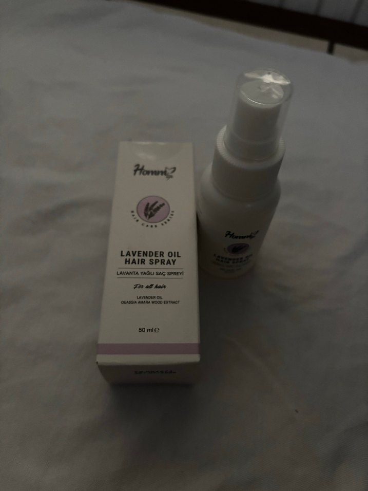 50 ml'lik beyaz pastel renkte lavanta yağlı saç spreyi. İçeriğinde lavanta yağı