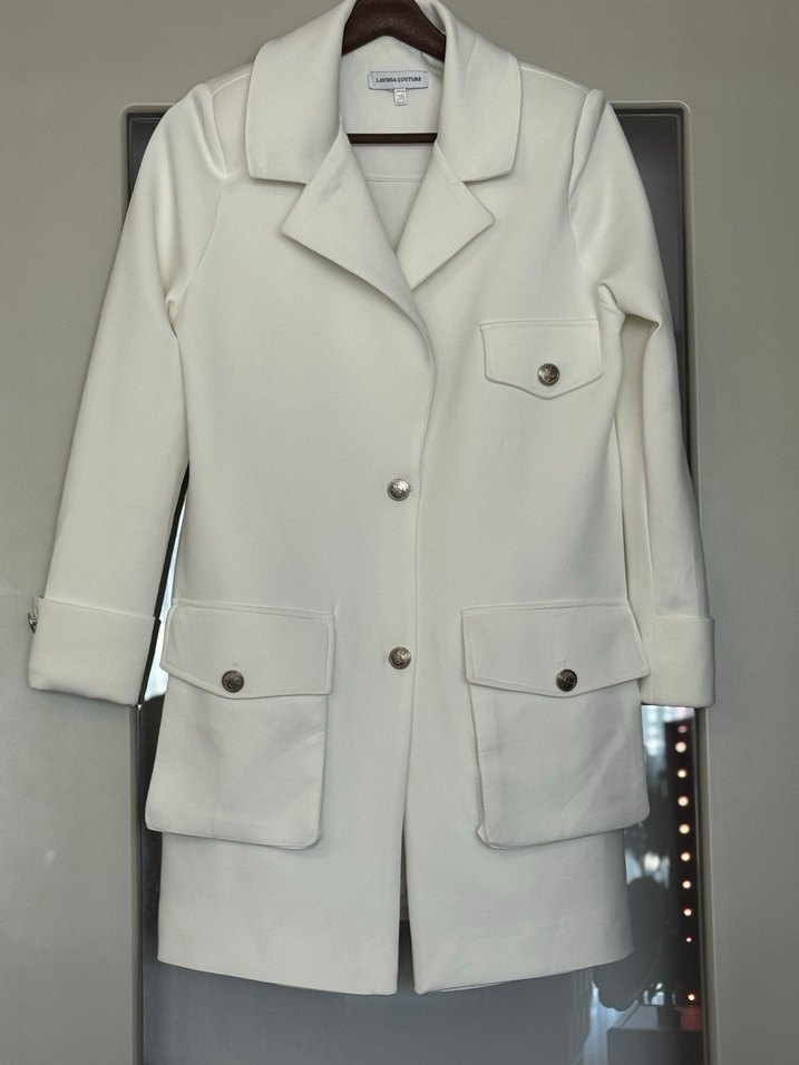 Lavinia Couture Düğmeli Beyaz Midi Kadın Ceket