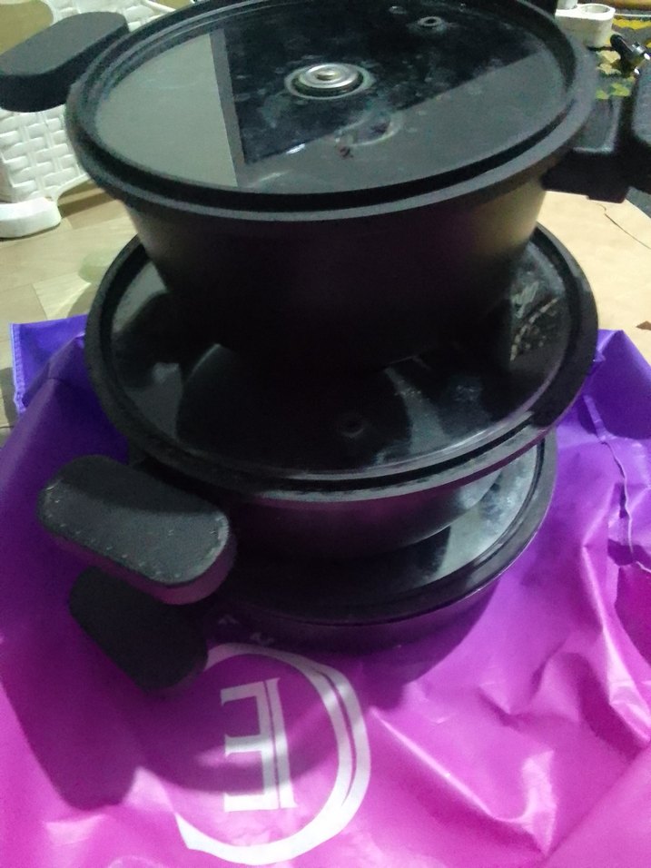 Kapaklı, sağlam saplı ve yapışmaz yüzeyli koyu mor tencereler, çeşitli pişirme ihtiyaçlarına uygundur. siyah renk silikon kapak LAVONNİ marka