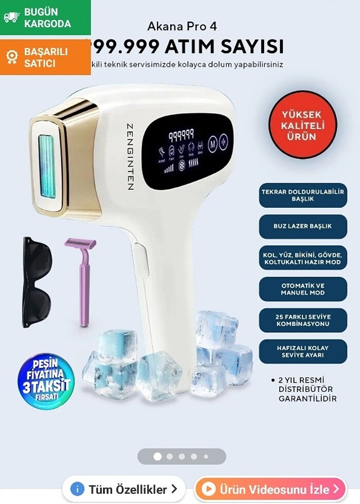 sıfır ürün kutusunda duruyor aldım ama kullanmiyorum zamanım olmuyor lazerde en güzel marka diyebilirim çok araştırarak almıştım tekrar dolum yapılıyor en güzeli bu sanırım diğerleri bitince çöp oluyor alana hayırlı olsun zenginten markadır