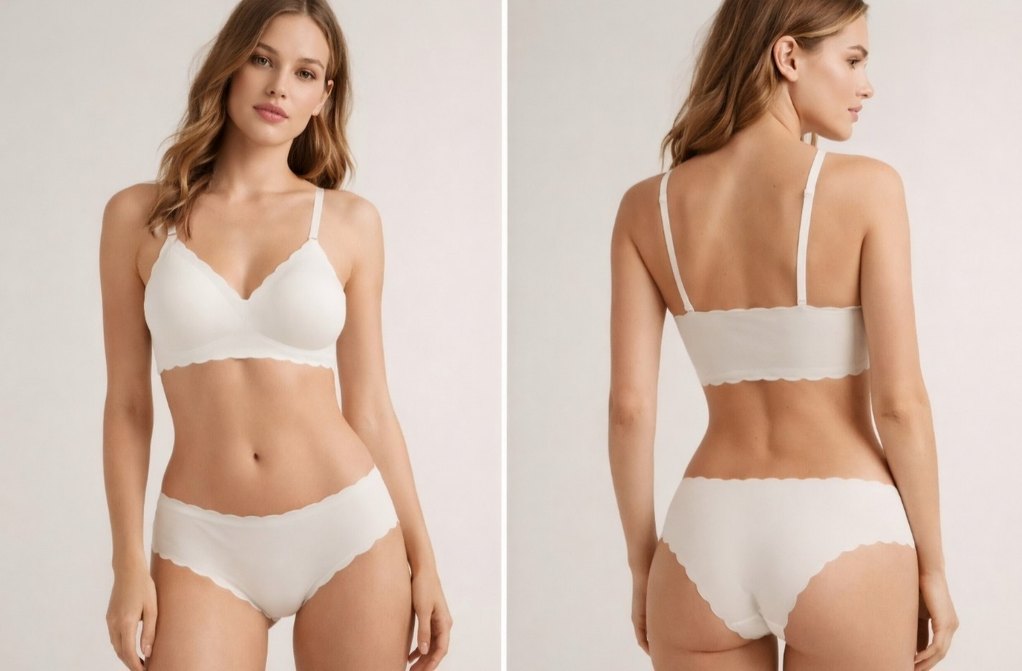 lazer kesim ince Beyaz Minimalist Sütyen ve Külot Takımı