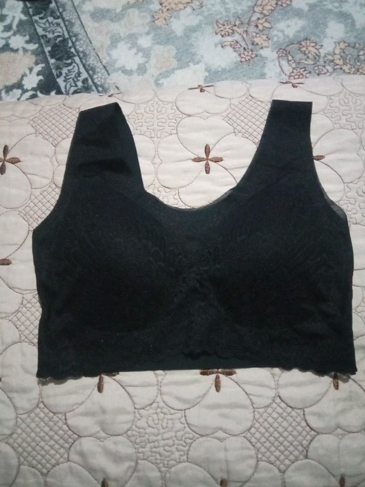 Siyah, midi uzunlukta, desen içermeyen spor sütyen. Rahat destek sağlayan geniş askılı ve yuvarlak yakalı tasarım. M beden
