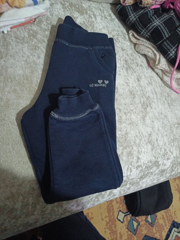 LC Waikiki çocuk için mavi, gri detaylı, örgü dokulu, fitted kesim eşofman altı. Rahat ve günlük kullanıma uygun. her türlü kıyafet 2/3/4/5 sorabilirsiniz