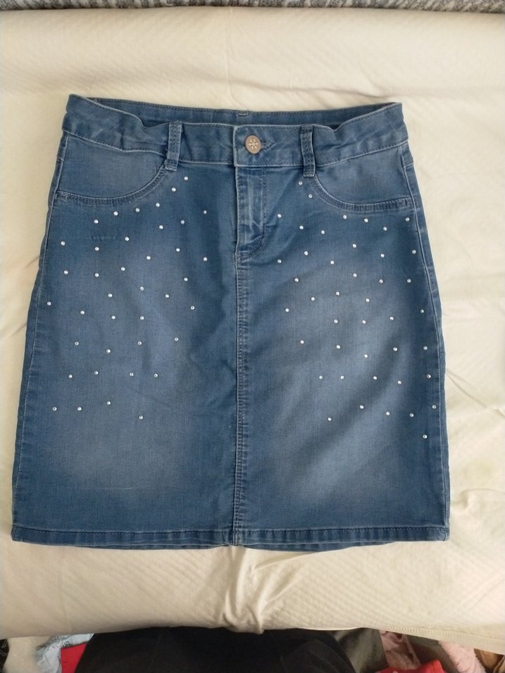 10-11 yaş taş detaylı kız çocuk kot etek son iki resimde belirttiğim yer dışında başka bir sorunu yok onlar da belli olmuyor