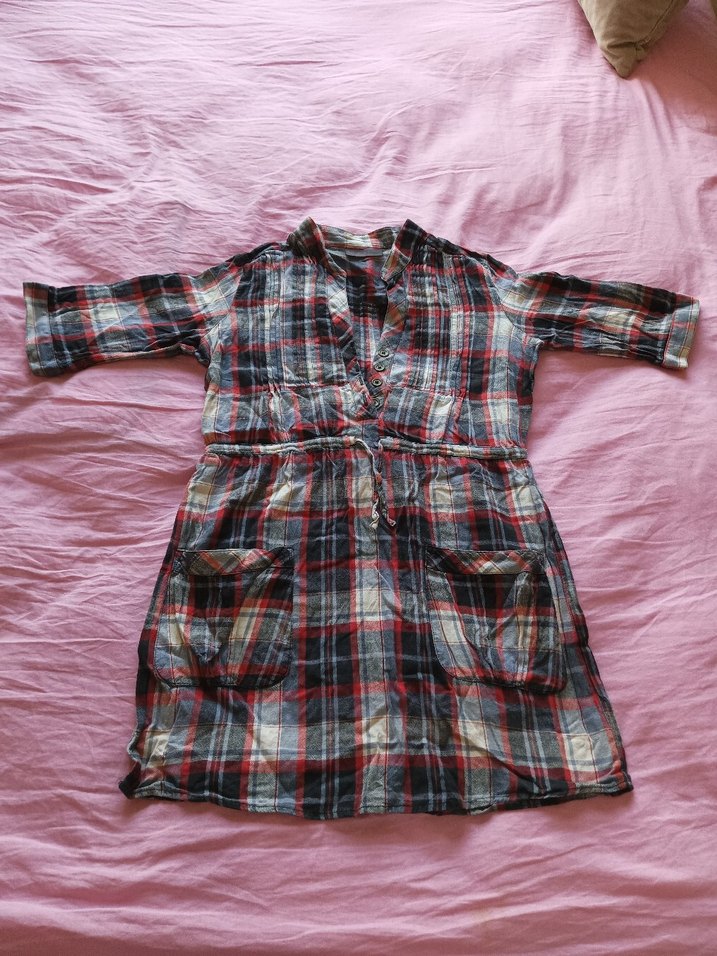 Bohem tarzda,ekose desenli, düğmeli, uzun kollu, yakalı ve cepli, bol kesim gömlek. Günlük kullanıma uygundur.