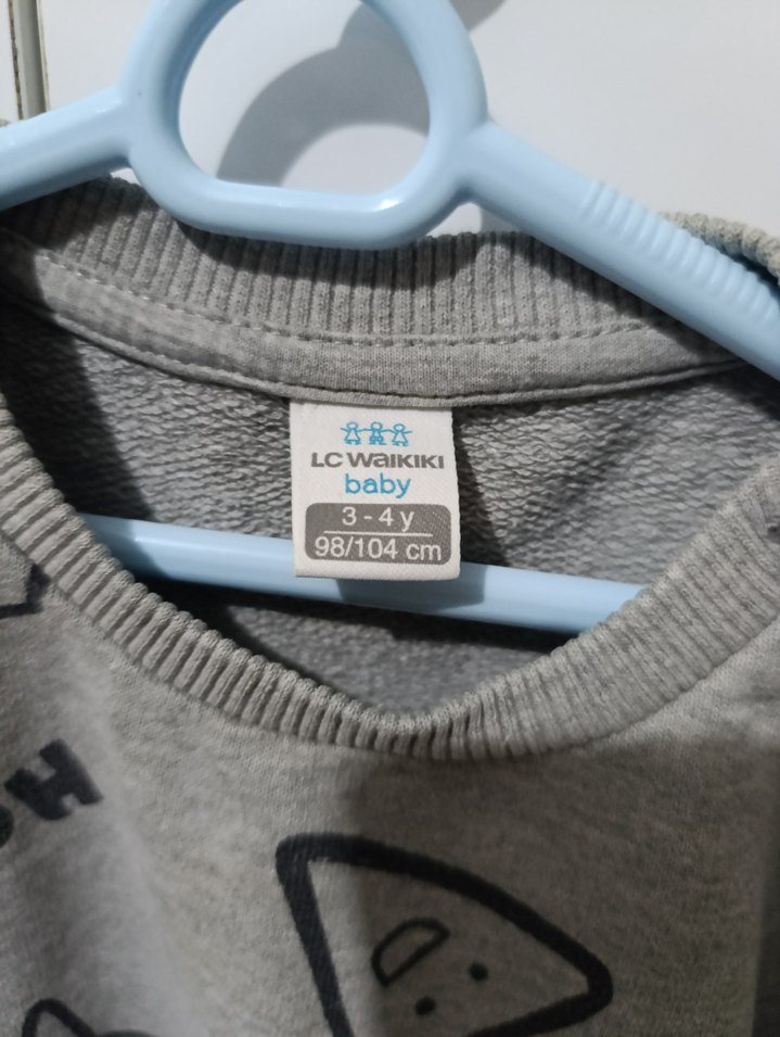 LC Waikiki markalı, 3-4 yaş, 98/104 cm beden, gri renkli baskılı bebek önlüğü.