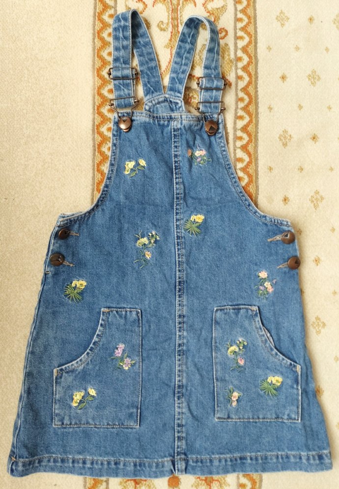 Lc Waikiki 3-4 Yaş Nakışlı Mavi Kız Kot Salopet Elbise