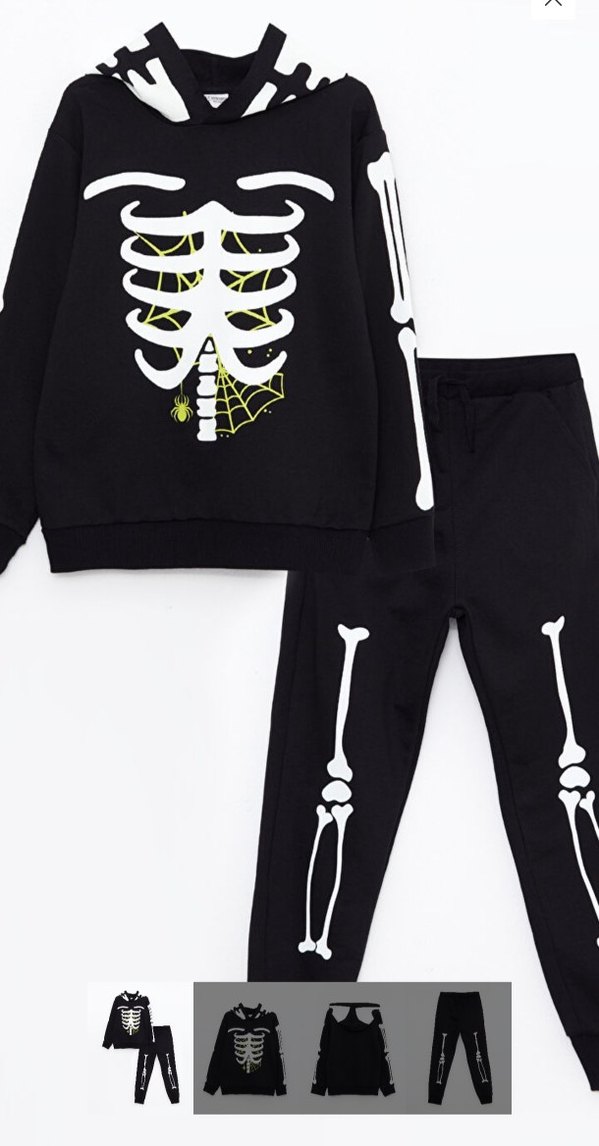 LC Waikiki 5-6 fosforlu eşofman takımı gece ışıl ışıl yanıyor sayılı giyildi leke solma yok alana hayırlı olsun 1 donem giyildiSiyah renkte, uzun kollu ve bisiklet yaka, zımbalı detaylı, iskelet baskılı fitted goth çocuk takımı.