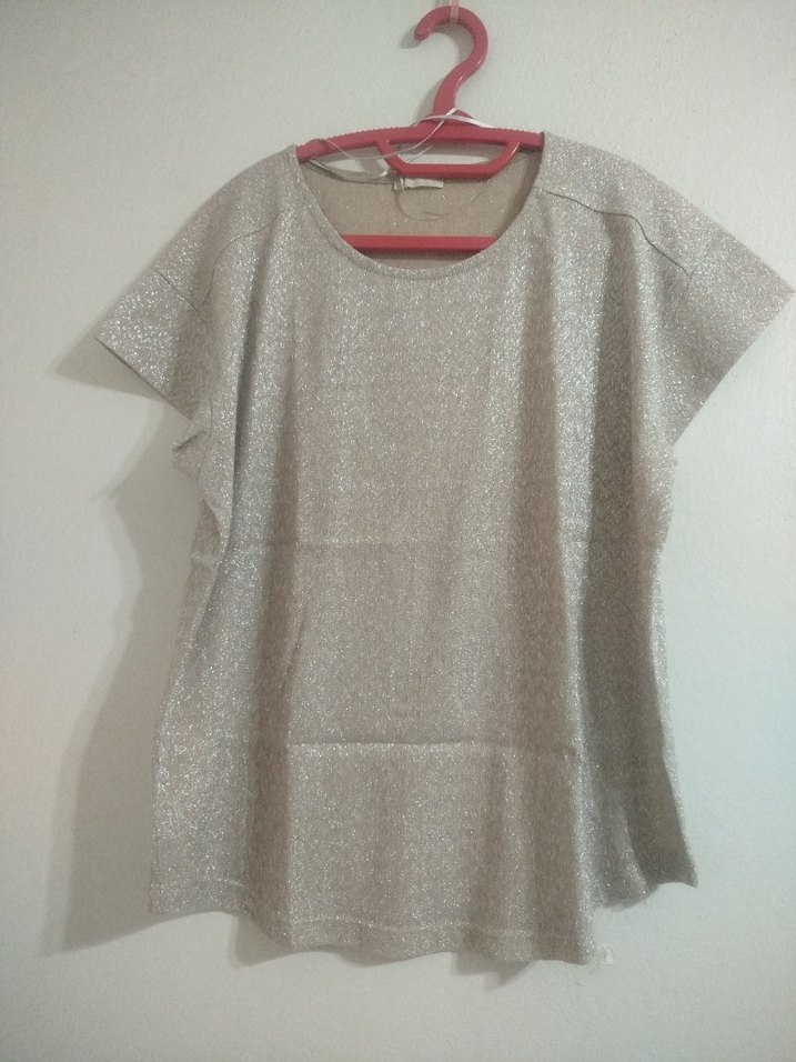 LC Waikiki temiz bayan bluz.Ürün az kullanıldığı için deformesi yoktur.Göğüs ölçüsü 56 cm. boy ölçüsü de enseden itibaren 67 cm.dir.Ürün gümüş simli dokuma kumaş, rengi de pudra rengine yakın olduğu için ten rengini işaretledim.