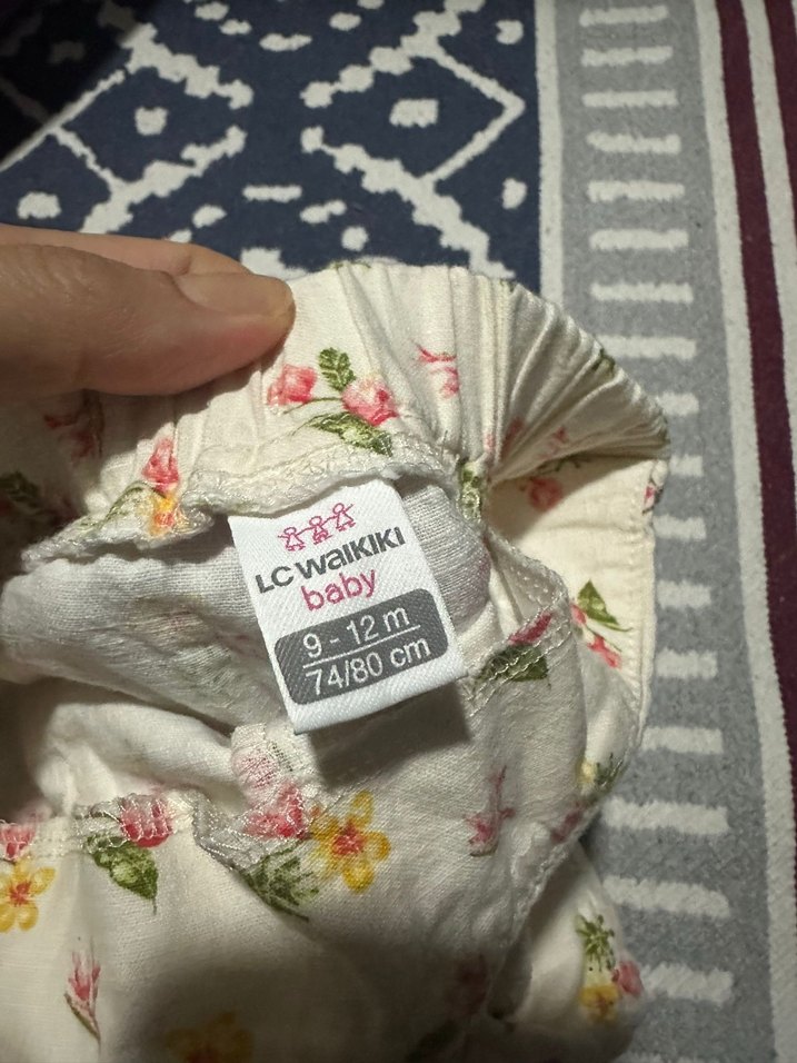 LC Waikiki bebek bezi, 9-12 ay arası, 74-80 cm beden, yumuşak kumaş ve çiçek desenlidir.